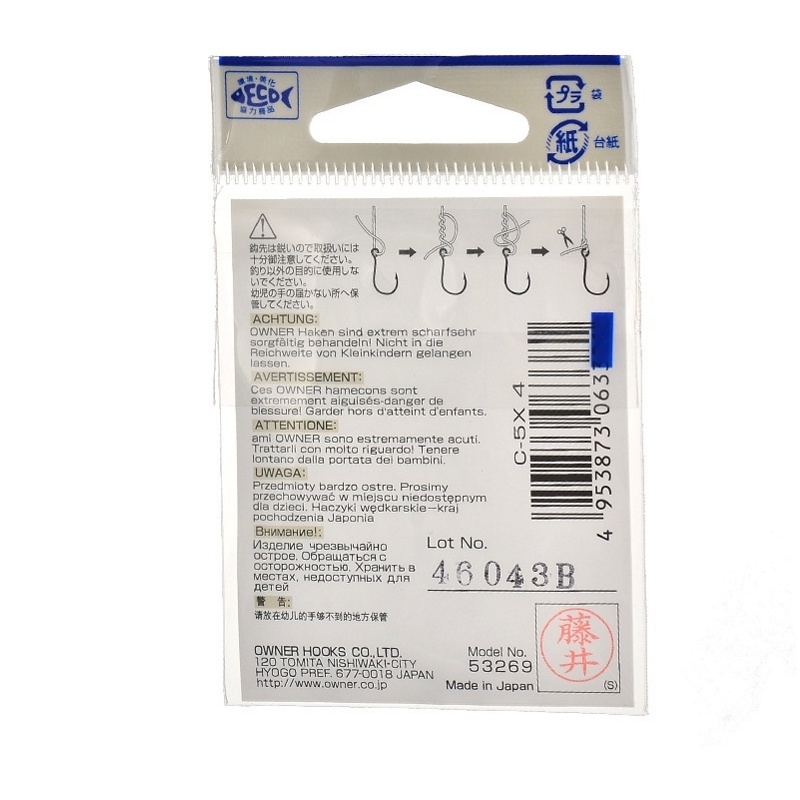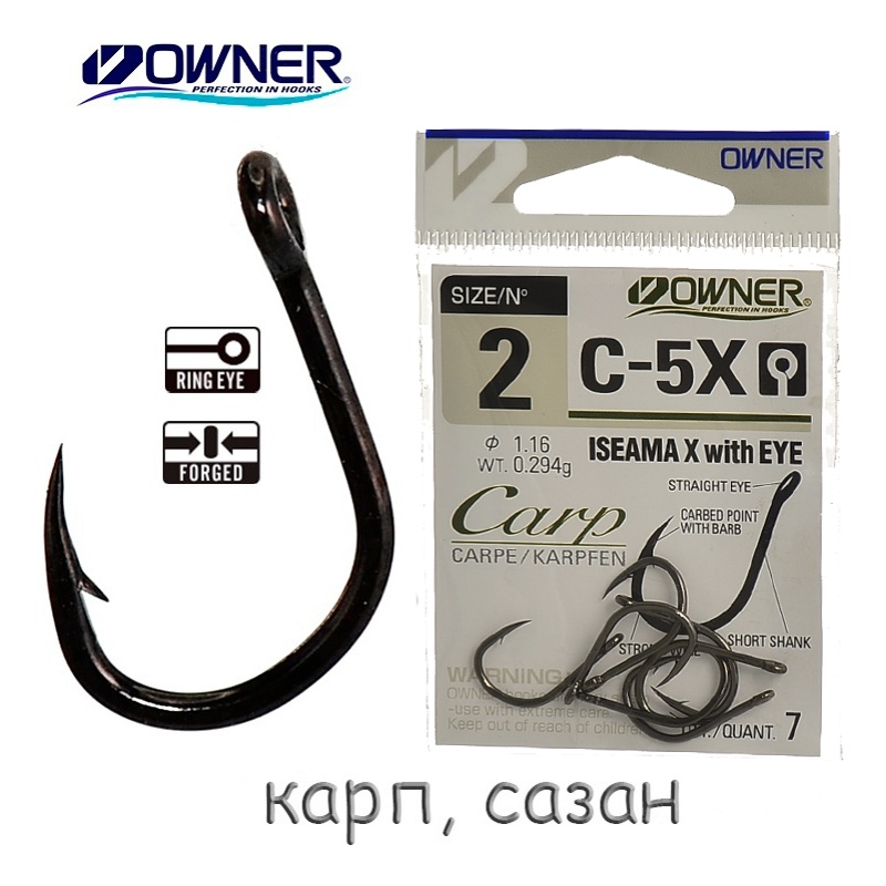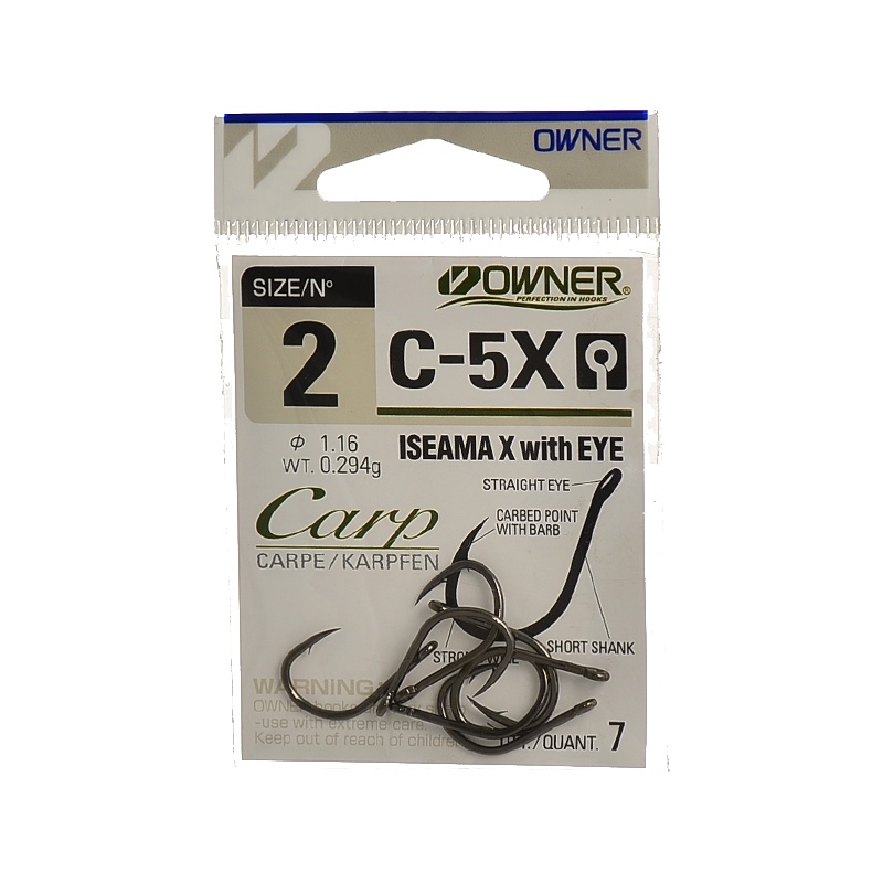 Для изготовления крючков данной модификации популярной модели 53265 Iseama With Eye (C-5) используется более толстая проволока, что позволяет использовать эти крючки в случаях ловли особенно крупной, сильной рыбы. При их использовании рыболов может быть уверен, что новенький крючок C-5X не станет слабым местом снасти при подсечке и вываживании. Предполагая, что крючки будут использоваться для ловли более мощных и, как правило, более крупных обитателей водных глубин, разработчики Owner разумно сместили размерный ряд в сторону более крупных размеров: крючки C-5X имеют размеры с 12-го по 1/0, в то время как C-5 — c 16-го по 1-ый.