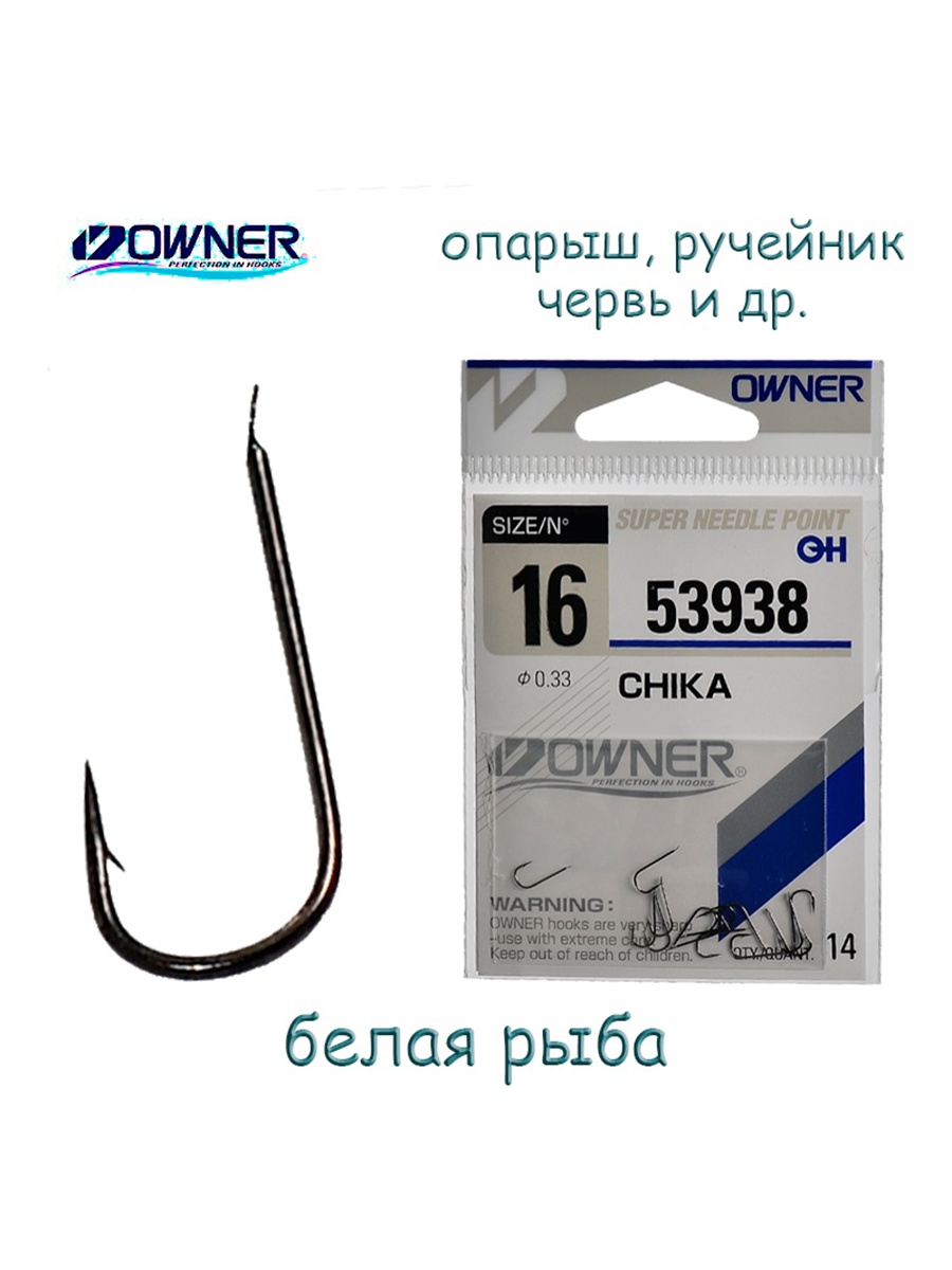 Крючки новой серии 53938, продолжающей этот модельный ряд, имеют удлиненное цевье, круглый загиб, аккуратную, не травмирующую рыбу, бородку, острейшее Super Needle Point жало. Отлично удерживают насадки животного происхождения, такие как опарыш, ручейник, червь и др. Рекомендованы для использования в поплавочных и донных. Крючки со средней длиной цевья и привычной огруглой формой поддева. Одни из самых универсальных крючков. Обладают хорошей остротой и достаточно прочны для того, чтобы их можно было использовать в матчевой ловле. Широчайший размерный ряд (с 8-го по 26-й размеры) позволяет подобрать крючок, наилучшим образом подходящий под конкретные условия ловли, используемую насадку и целевую рыбу. Не подойдут они разве что для ловли карпа.
