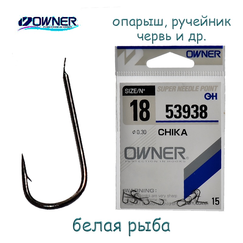 Крючки новой серии 53938, продолжающей этот модельный ряд, имеют удлиненное цевье, круглый загиб, аккуратную, не травмирующую рыбу, бородку, острейшее Super Needle Point жало. Отлично удерживают насадки животного происхождения, такие как опарыш, ручейник, червь и др. Рекомендованы для использования в поплавочных и донных. Крючки со средней длиной цевья и привычной огруглой формой поддева. Одни из самых универсальных крючков. Обладают хорошей остротой и достаточно прочны для того, чтобы их можно было использовать в матчевой ловле. Широчайший размерный ряд (с 8-го по 26-й размеры) позволяет подобрать крючок, наилучшим образом подходящий под конкретные условия ловли, используемую насадку и целевую рыбу. Не подойдут они разве что для ловли карпа.