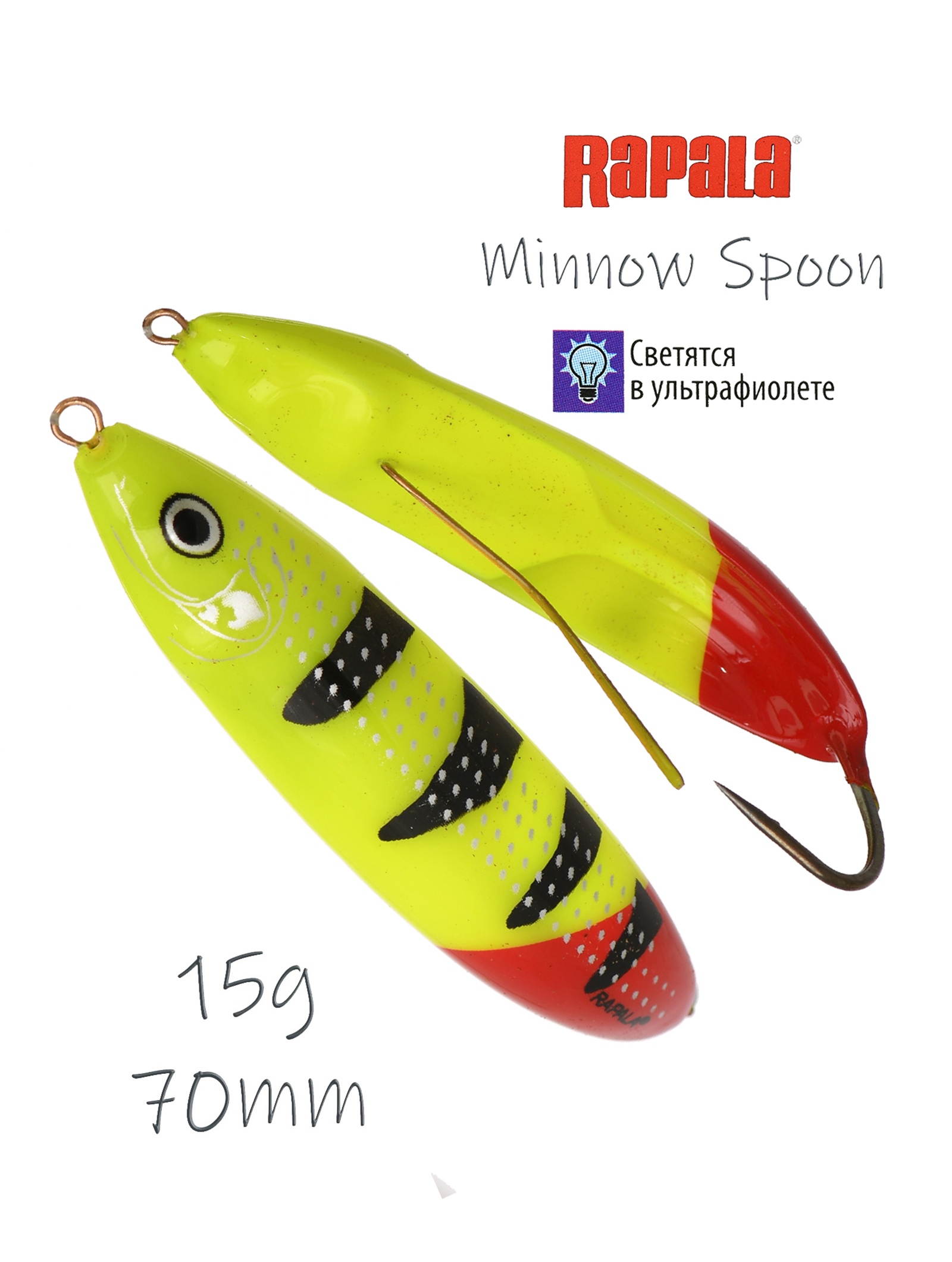 Minnow Spoon от финской фирмы Rapala, известный всем рыбакам "вездеход", запатентованная конструкция анти зацеп творит чудеса в заросших водоемах и торфяниках, где ловля на другие приманки приводит лишь к боли их потерь. Minnow Spoon любит неторопливую проводку, при ней приманка идеально описывает зигзаги и не сбивает игру, которая заложена в её конструкции и форме тела. Также можно делать небольшие паузы, на которых блесна Minnow Spoon планируя, погружается на дно, поднимая облачко мути, и в это время делаем короткую подтяжку (3-5 см.), и снова продолжаем равномерную проводку. Неплохо облавливать ею окна в растительности на сваливание с кувшинок и погружении вдоль стеблей, как раненная рыбка.