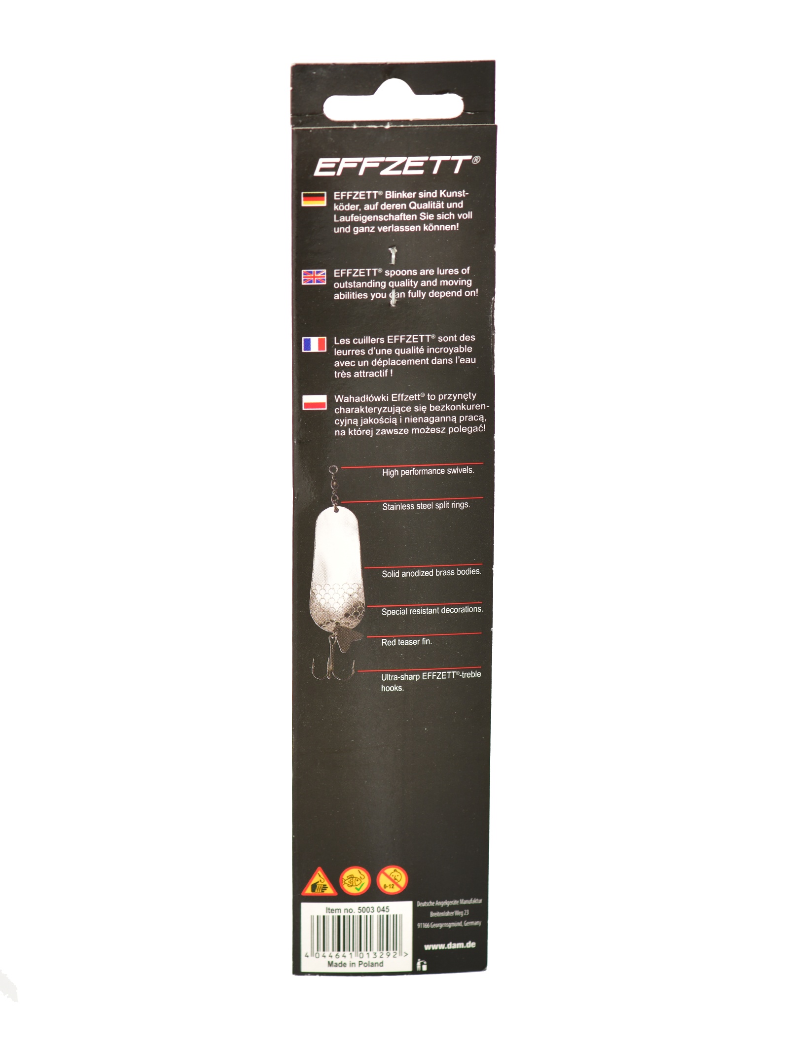 Коллекция очень уловистых, проверенных годами, легендарных классических колеблющихся блесен Effzett Standard Spoon от компании DAM в этом сезоне пополнилась новыми моделями с эксклюзивными дизайнерскими расцветками, которые удалось нанести на рифленую металлическую поверхность (изображающую мелкую чешую рыбы) благодаря самым последним инновационным технологиям.
