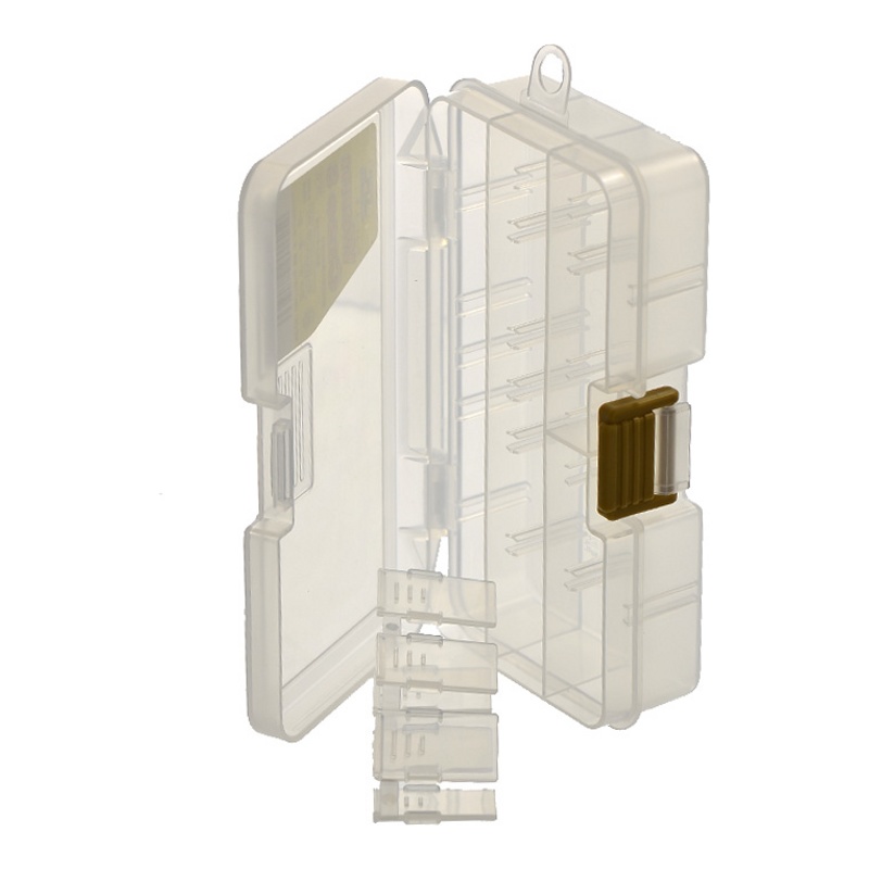 Система крепления верхней и нижней частей такова, что исключает случайную поломку. Петли коробок дополнительно снабжены специальными защитными накладками, не позволяющими повредить петли или крышку. Конструкция защелки вкупе с формой верхней крышки позволяют открывать и закрывать коробки плавно без излишних усилий, которые зачастую провоцируют повреждение. Плотное прилегание, идеальная обработка всех поверхностей. Может быть использована для комплектации ящиков VS-8050 и VS-3080. Долговечный пластик семейства полипропиленов гарантирует 100-процентную устойчивость к разъедающему действию твистеров, риперов и др. мягких приманок.Все модели защищены патентом. Поверхность крышки не ровная, а имеет выборку, повышающую стойкость к деформациям различного типа; - защелка одинарная, утоплена в корпус, что защищает ее от ударов и случайного открывания; - крышка прилегает плотно, без зазоров; - петли крышки защищены от ударов и случайных поломок, их закрывает выступ в форме козырька. - все коробки серии SFC «System Fishing Compo» производятся в Японии.
