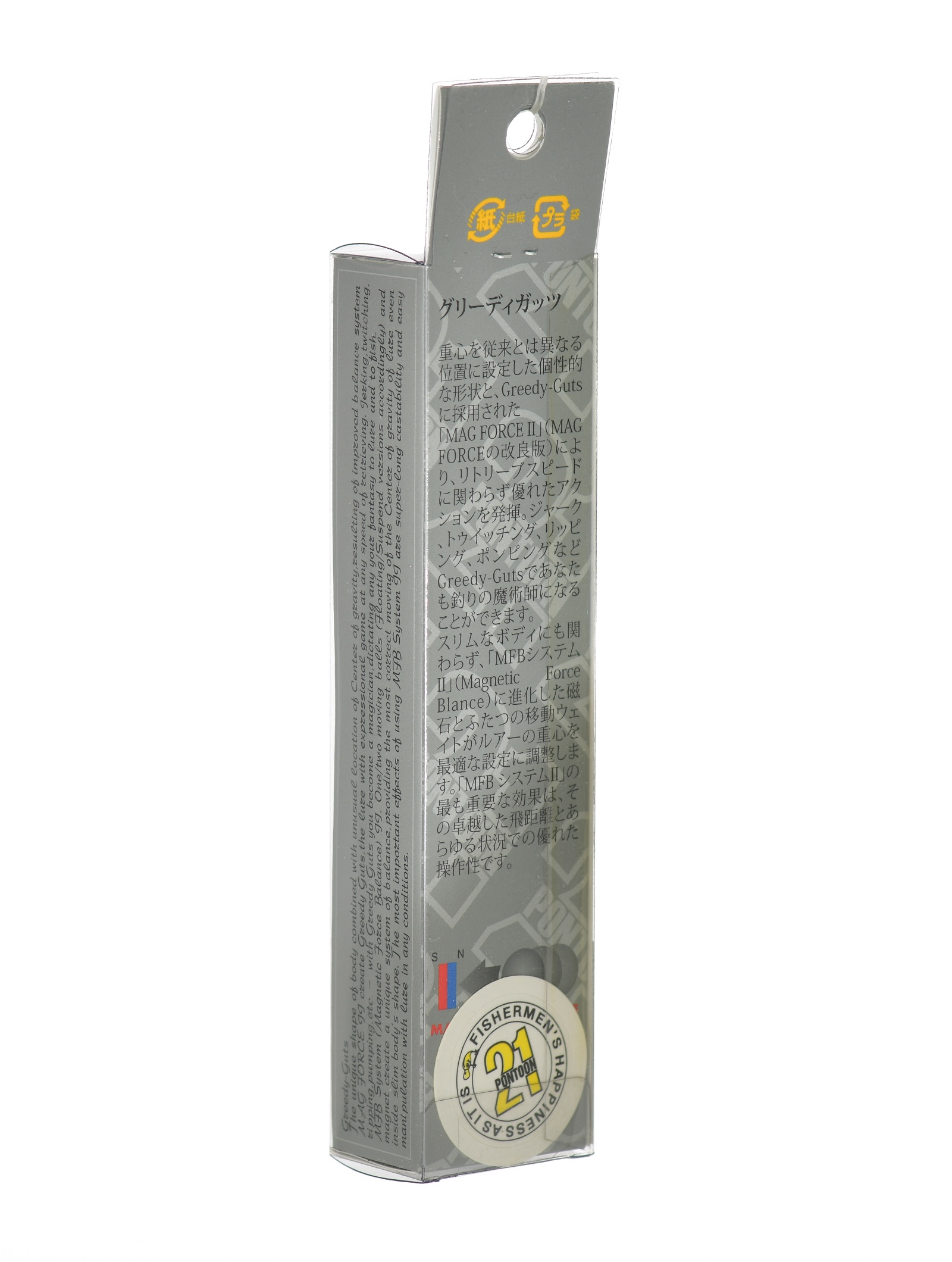Этой серией воблеров Pontoon 21 открывает новую серию своих приманок – активных и легко управляемых воблеров- минноу . В дословном переводе Greedy Guts означает ни что иное, как «вертлявый обжора». И действительно, своим внешним видом и особенно отвисшим распирающим брюшком эти воблеры напоминают сильно объевшегося малька. Такая конструктивная особенность не случайна. Объемом брюшке воблера искусно размещены два достаточно увесистых груза-балансира системы Mag Force Balance II.