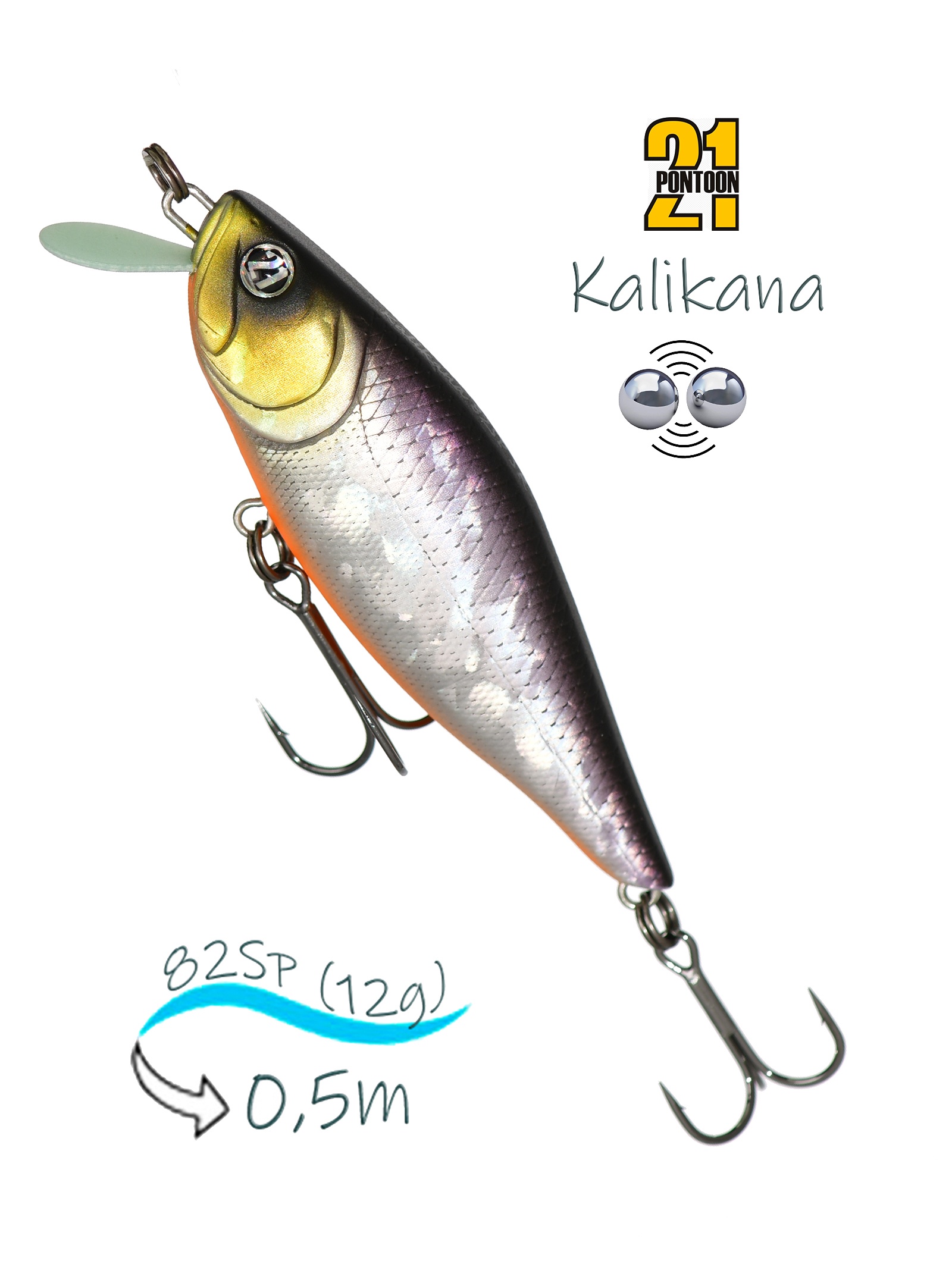 При равномерной проводке воблер Kalikana совершает очень активные движения телом: сочетания интенсивного роллинга (rolling) с менее выраженными колебаниями относительно вертикальной оси (wobbling). Равномерную проводку можно и нужно разнообразить периодическими паузами — анимация Stop-and-Go бывает особенно эффективна в холодной воде.