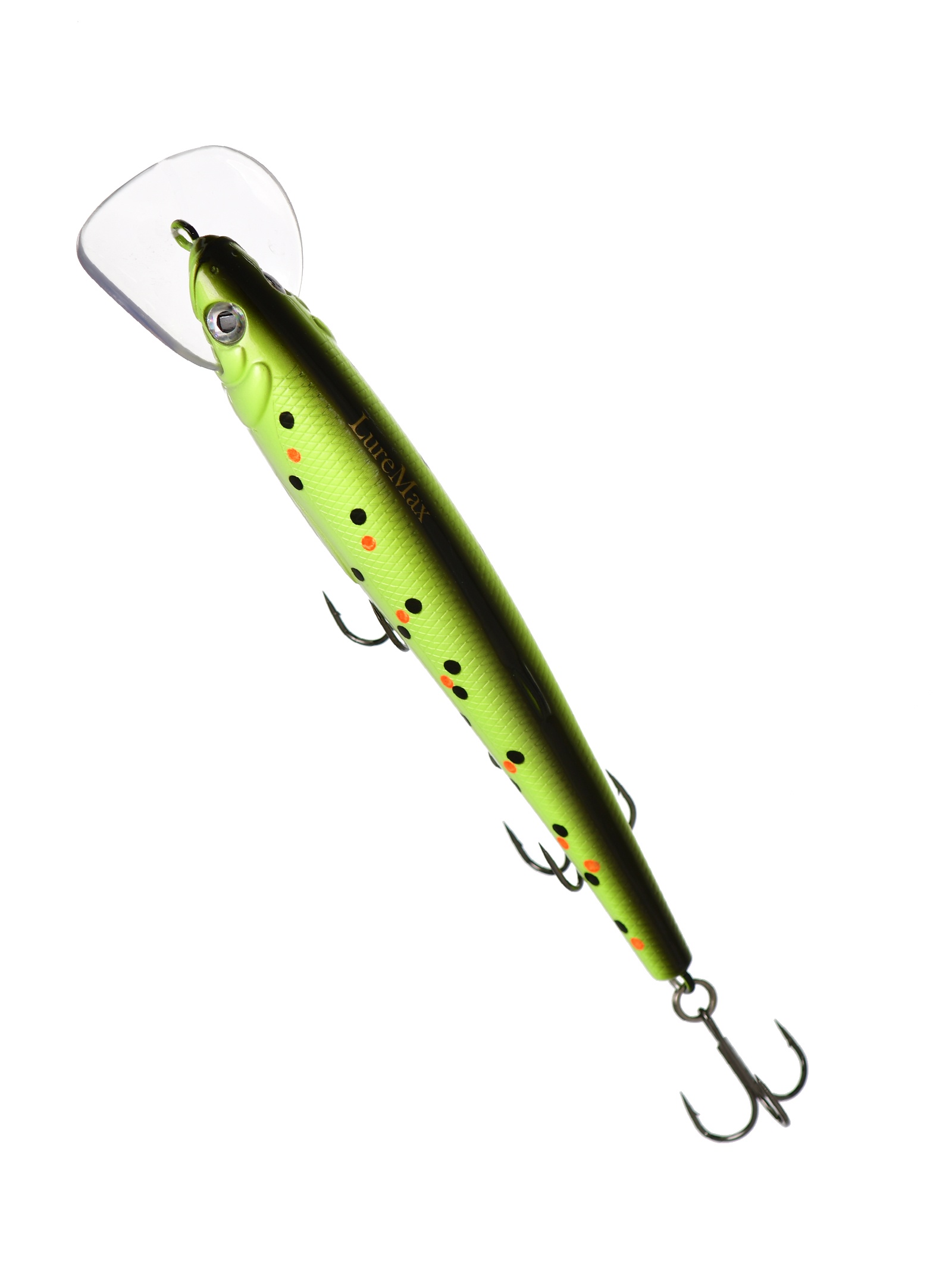 Воблер для рыбалки LureMax Stinka - идеальный выбор для троллинга судака, щуки, крупного окуня, озерной кумжи и лосося. Его седловидная лопатка и специальная балансировка обеспечивают уникальную игру, которая привлекает хищников и вызывает их агрессию. Во время проводки воблер периодически делает броски в сторону, что подстегивает рыбу к поклевке. Модель 130FMDR рекомендуется использовать со скоростью проводки от 3 до 6 км/ч, хотя оптимальная скорость зависит от погодных условий. Воблер имеет рабочее заглубление от 2,8 до 3,2 метров, что делает его идеальным для ловли на различных глубинах. Одной из особенностей этого воблера является его "тихая" работа - в нем нет шумовых камер. Это особенно полезно при ловле осторожной рыбы, которая может быть чувствительна к лишнему шуму. Воблер для рыбалки LureMax Stinka уже заслужила признание рыболовов на различных водоемах России. Цветовая гамма разработана с учетом специфики ловли на местных водоемах и при участии российских рыболовов. Благодаря светоотражающим свойствам, приманка становится более заметной для хищника в условиях низкой освещенности. Широкий выбор цветов позволяет подобрать подходящую окраску воблера Stinka для любых условий освещенности и прозрачности воды на водоеме. Вы можете выбрать естественные цвета, которые напоминают пищу для рыбы, или провоцирующие яркие расцветки, которые привлекут внимание хищника. Несмотря на то, что воблер Stinka в первую очередь предназначен для троллинга, он также отлично подходит для ловли взаброс на глубинах до 4 метров. Игра приманки не требует сложной анимации - достаточно равномерной проводки с небольшими паузами и ускорениями, чтобы привлечь внимание рыбы. Приманка оснащена крючками Saikyo из Японии, что гарантирует надежность и качество. Все эти особенности делают воблер LureMax Stinka незаменимым средством для успешной рыбалки на щуки, судака, крупного окуня, озерной кумжи и лосося.