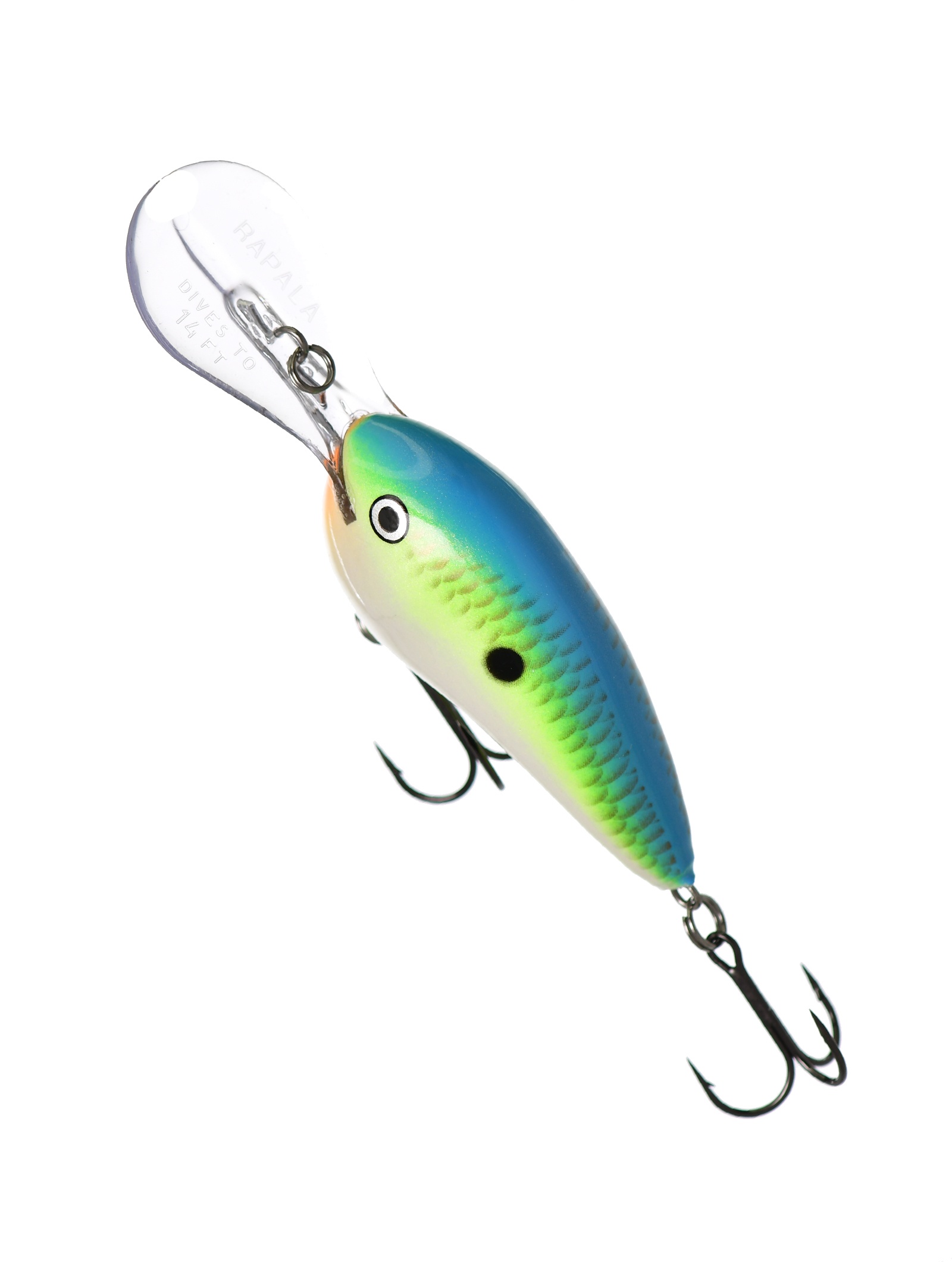 Материал первого класса и точно размещенная дополнительная нагрузка - так выглядит структура супер эффективного воблера. Если добавить сюда еще очень тонкую, изготовленную из поликарбонатов лопасть, мгновенно затапливающую приманку на нужную глубину и вводящую ее в характерные колебания, получаем великолепный воблер DT (Dives-To), отличающийся необычайной цепкостью. Аэродинамическая форма корпуса позволяет забрасывать эту приманку более, чем на 50 м. А так как при более далеком забросе, воблер может дольше находиться в зоне кормежки хищника, эффективность новой модели DT является потрясающей.