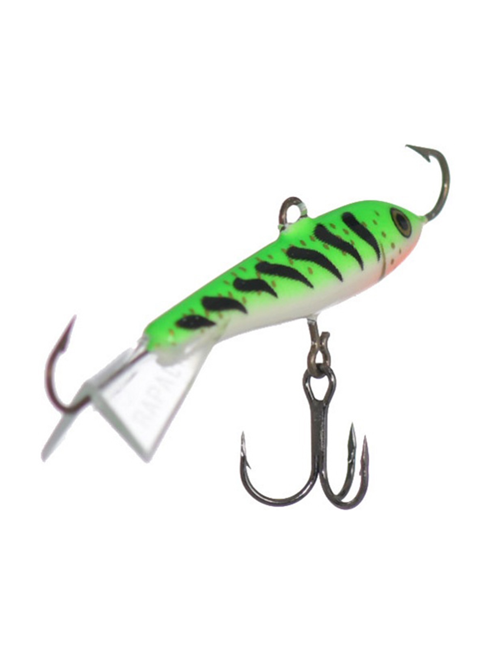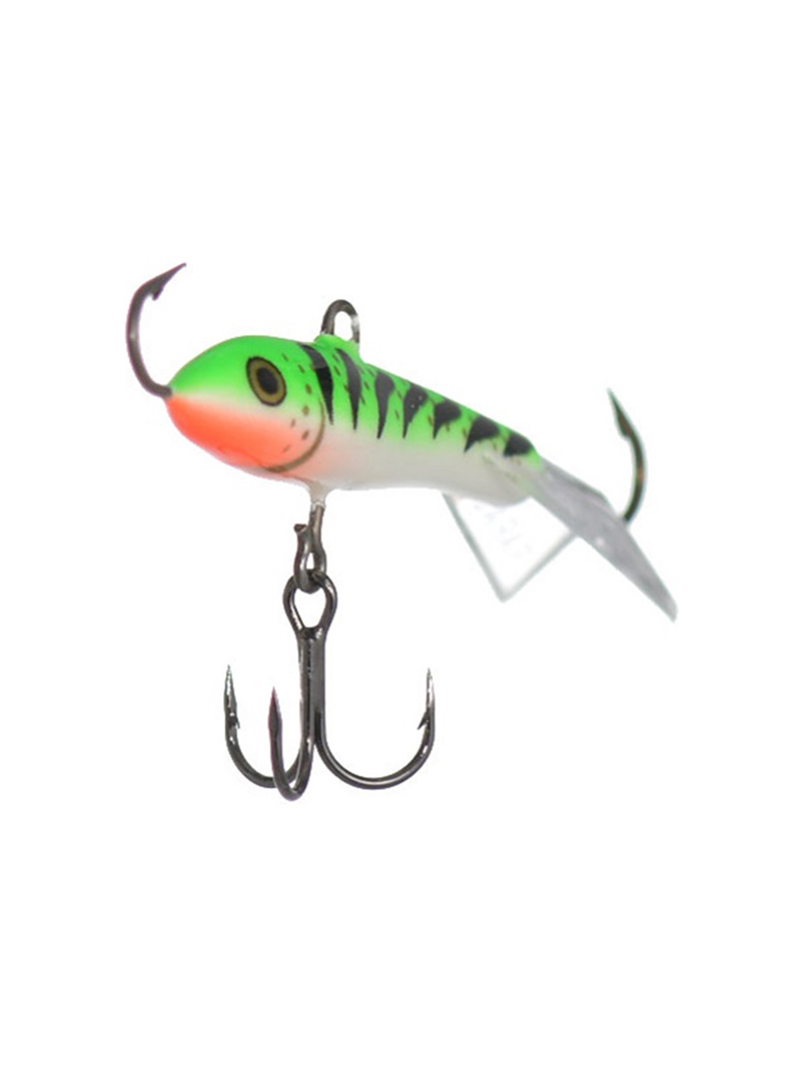 По форме балансир Rapala Jigging Rap напоминает небольшого малька уклейки, плотвички или окунька. Тело приманки вытянуто, немного сплюснуто по бокам. Форма балансира обеспечивает стабильную «восьмерку» и среднюю амплитуду отклонений от оси лунки.
