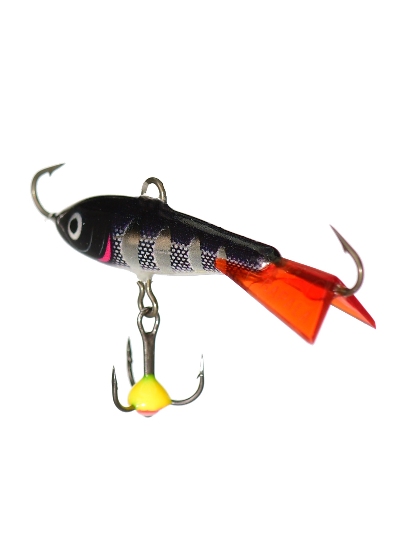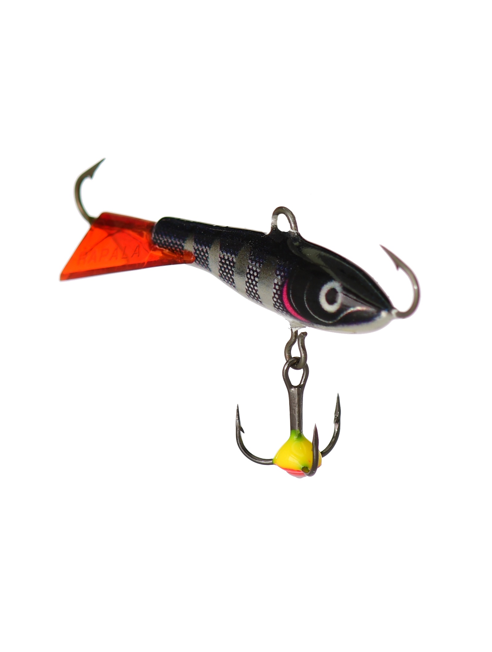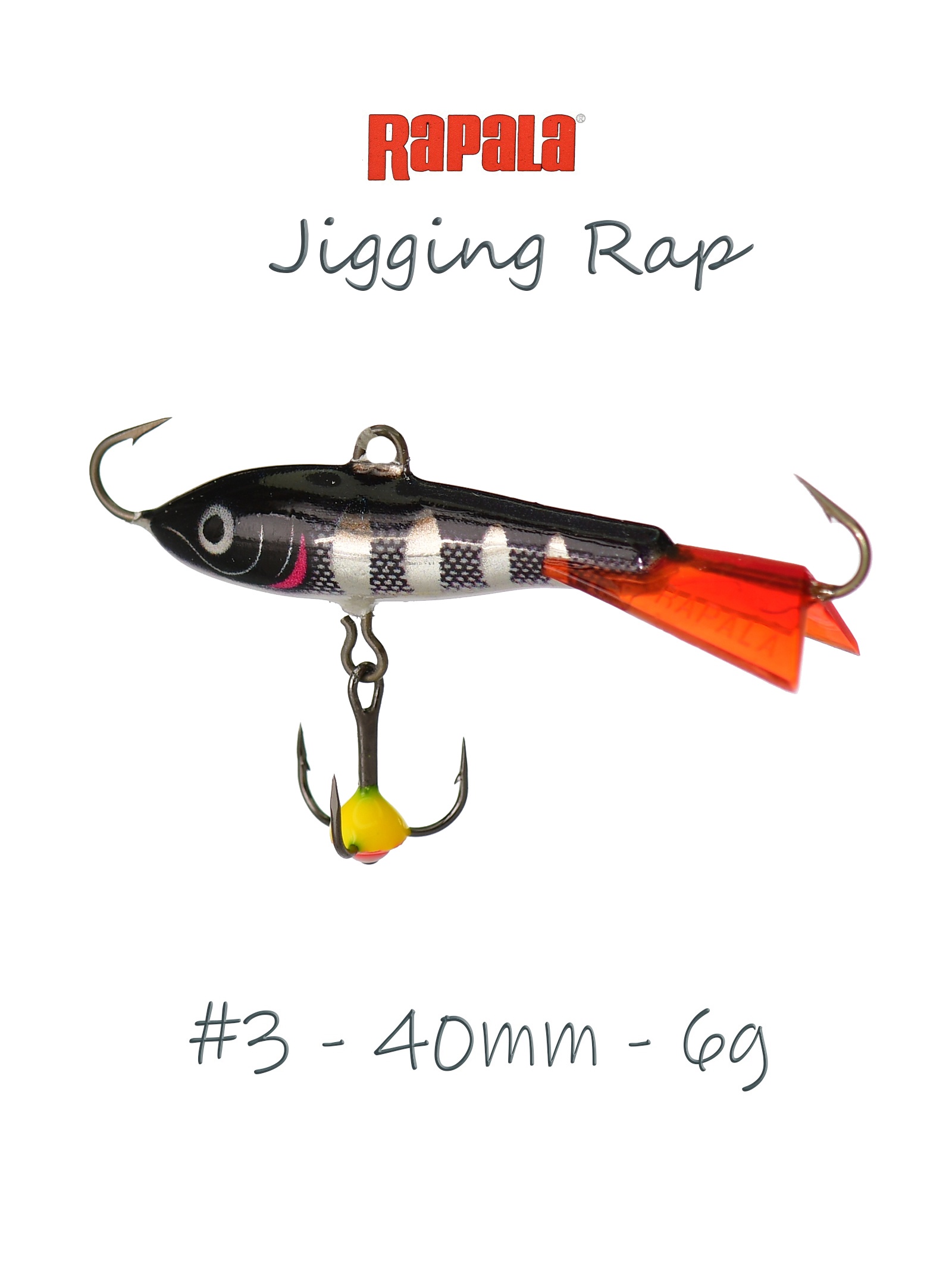 По форме балансир Rapala Jigging Rap напоминает небольшого малька уклейки, плотвички или окунька. Тело приманки вытянуто, немного сплюснуто по бокам. Форма балансира обеспечивает стабильную «восьмерку» и среднюю амплитуду отклонений от оси лунки. Такая классическая игра этого типа зимних приманок одинаково результативна для пассивного, а также активного хищника. Поэтому балансир можно применять, как поисковый, так и точечно, на ограниченных участках акватории ловли.