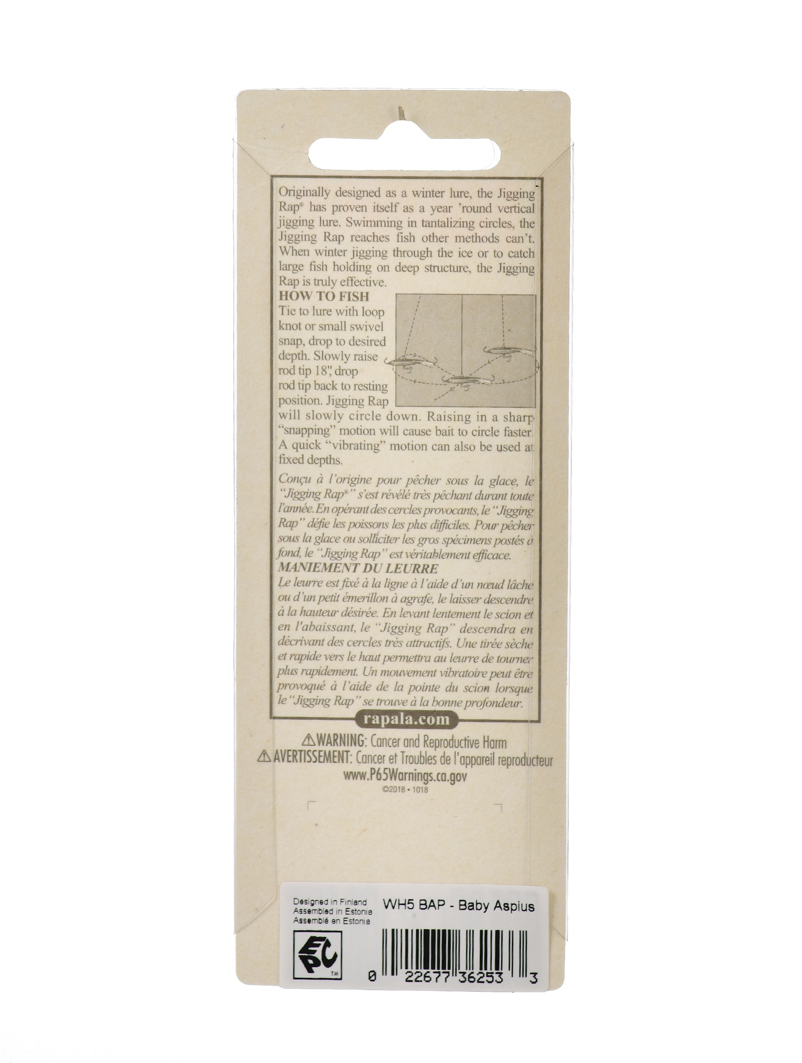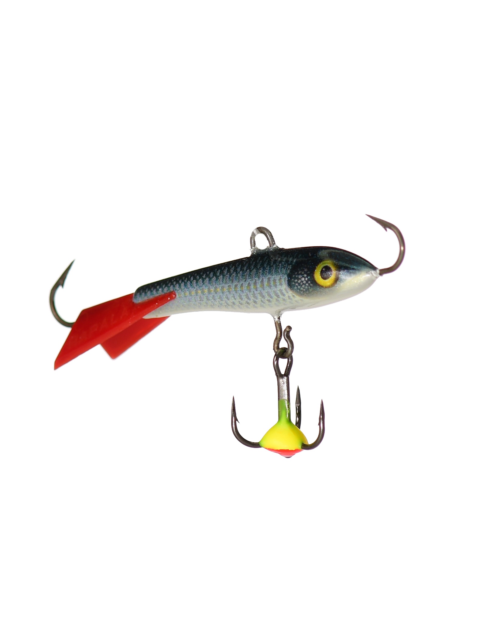 По форме балансир Rapala Jigging Rap напоминает небольшого малька уклейки, плотвички или окунька. Тело приманки вытянуто, немного сплюснуто по бокам. Форма балансира обеспечивает стабильную «восьмерку» и среднюю амплитуду отклонений от оси лунки. Такая классическая игра этого типа зимних приманок одинаково результативна для пассивного, а также активного хищника. Поэтому балансир можно применять, как поисковый, так и точечно, на ограниченных участках акватории ловли.